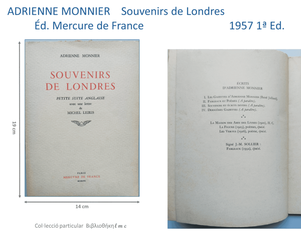 LlIBRES ESCRITS EN VIDA PER ADRIENNE MONNIER