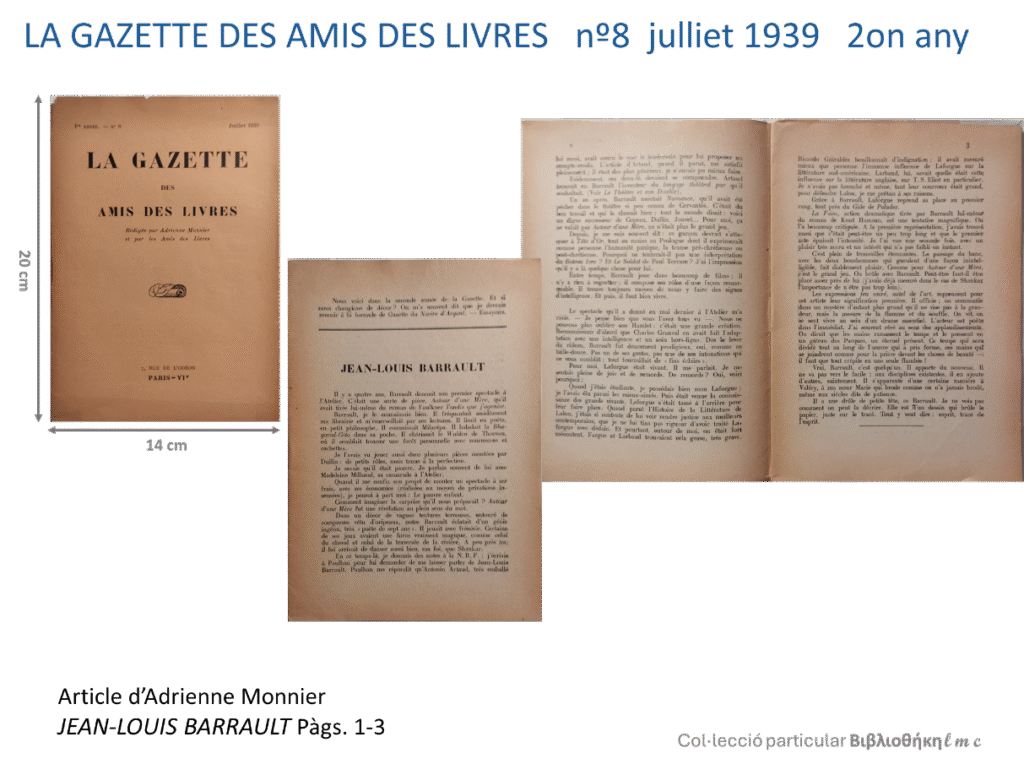Jean-Louis Barrault, publicat al nº 8 de la revista La Gazette des Amis des Livres, juliol de 1939.